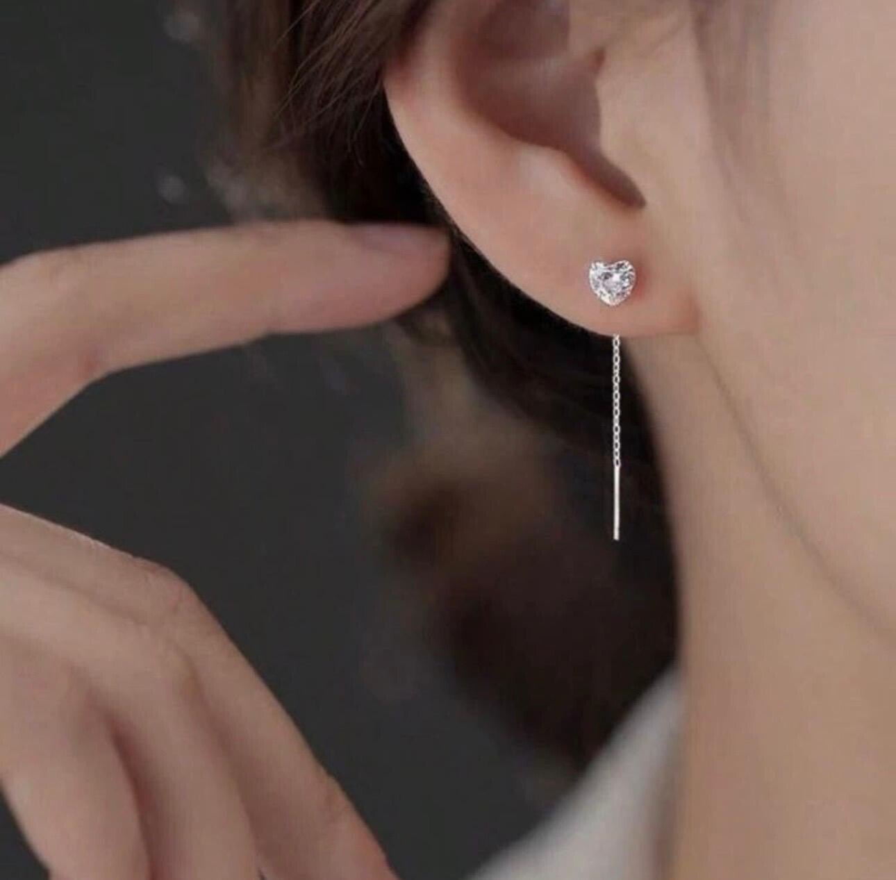 Orecchinia catena pendenti a forma di cuore colore argento