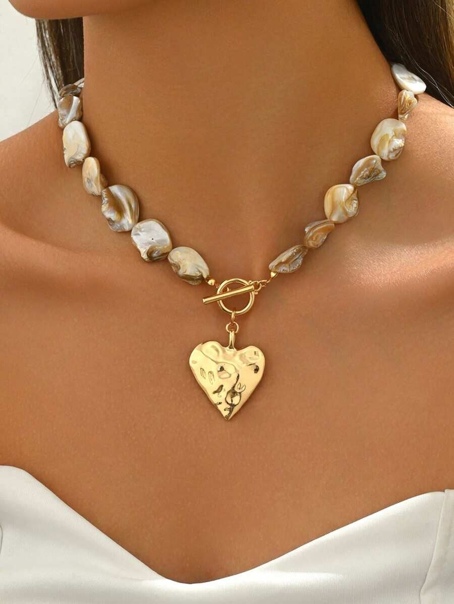 Collana con maglia a conchiglia e ciondolo a cuore in metallo