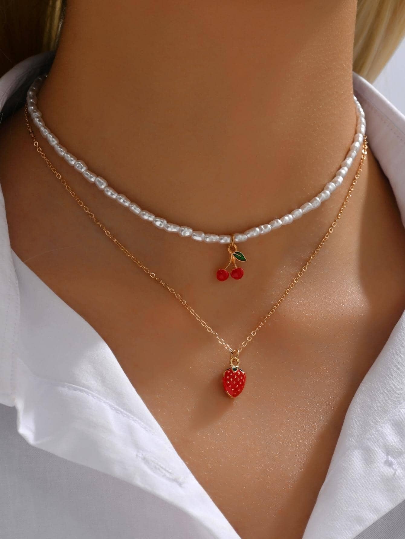 Collana doppiamaglia con perle e ciondoli tema frutta